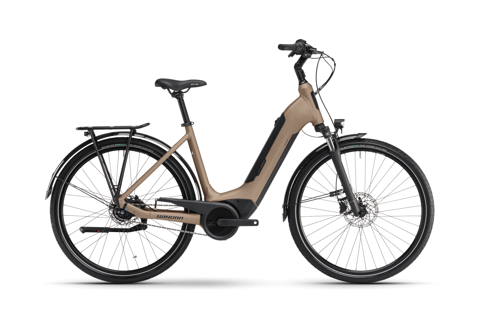 Do you want to enter the world of eBiking? Then our Winora Tria N8f E Low with freewheel is your perfect companion. A city eBike that comfortably takes you to work or to your favourite café – or motivates you to go for a longer ride or two at the weekend. The quiet Bosch Active Plus Smart System with 500Wh battery offers you optimal support when the going gets a bit steeper or you have luggage on board. Solid components such as the low-maintenance Shimano Nexus hub gears, hydraulic disc brakes and a suspension fork with 63mm travel ensure that you are always safe and comfortable on the road. The low step-through is especially comfortable, so you can stop at any traffic light or quickly get on and off again. Welcome to the world of eBiking!
