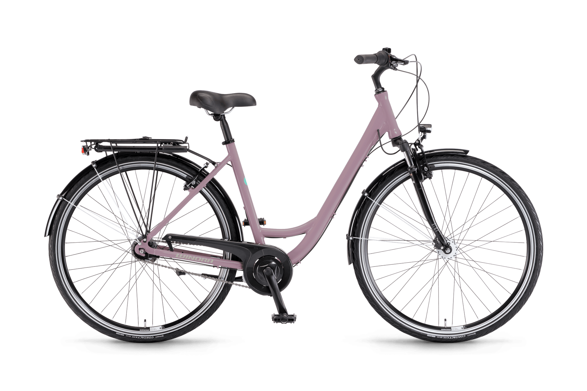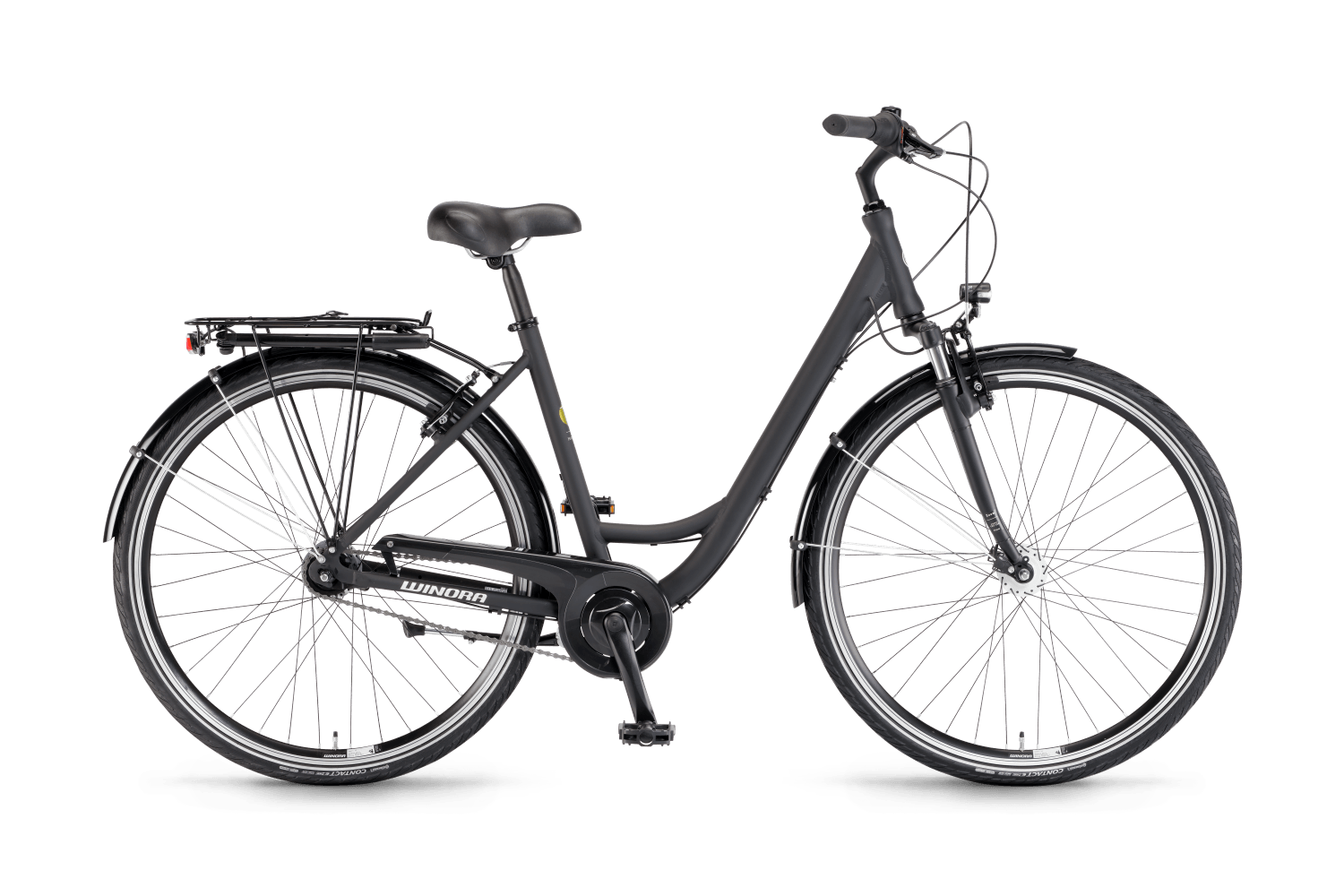 Che tu stia andando al lavoro, al bar o al mercato, WINORA Hollywood 28 Wave ti garantisce un’esperienza di guida fluida in città. Questa bici da città classica unisce stile e comfort con un cambio al mozzo a 7 velocità a bassa manutenzione, un freno a contropedale affidabile e freni V-Brake. Il telaio low-step permette di salire e scendere con facilità, mentre le ruote da 28 pollici offrono una guida confortevole. Grazie al telaio in alluminio leggero e alla tecnologia Shimano affidabile, pedalerai sempre e dovunque in totale relax.