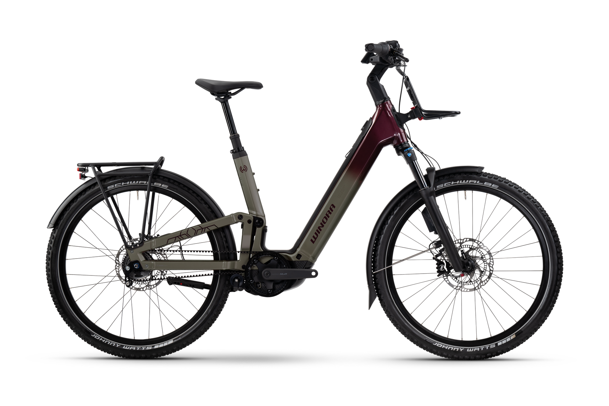Comfort e facilità ad ogni chilometro. Questo è ciò che rappresenta la nostra nuova Winora Sinus FS R5f Pro full suspension. Equipaggiata con l'ultimo motore Bosch Performance CX e una batteria da 800Wh, questa e-bike comfort è il tuo compagno affidabile in ogni momento. Anche la trasmissione a cinghia durevole, un'alternativa a bassa manutenzione alla tradizionale catena, contribuisce alla sua affidabilità. L'assetto full suspension con forcella anteriore e l'ammortizzazione del telaio posteriore, insieme agli pneumatici larghi, rendono anche le strade con ciottoli e i sentieri pieni di buche piacevoli da percorrere. Il telaio low-step e la sella regolabile rendono facile salire e scendere dalla bici ai semafori. Per maggiore comodità, il supporto Klickfix con un portapacchi anteriore e il portapacchi posteriore garantiscono spazio sufficiente anche per grandi spese. Siamo certi che non troverai maggiore comodità, comfort e leggerezza nella vita di tutti i giorni di quanto offra questa bici.
