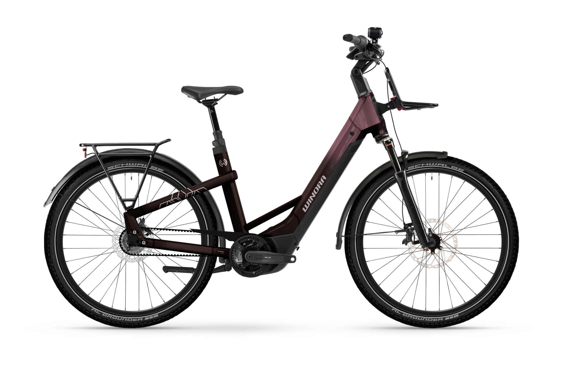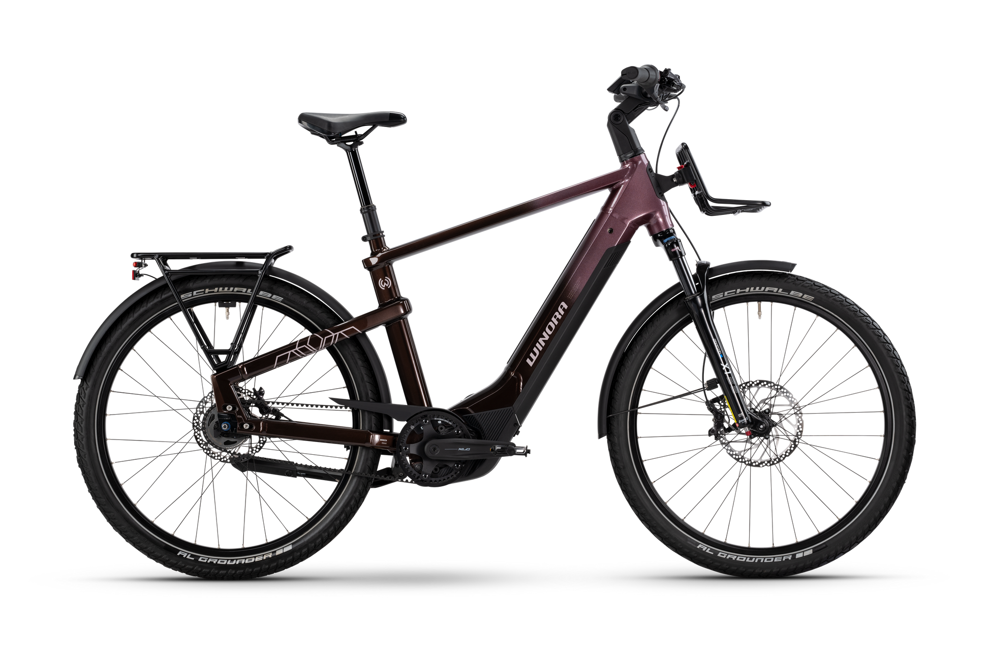 Il massimo piacere di guida a ogni chilometro. Con la nuova Winora Yakun R5, non importa se stai andando al lavoro o se stai partendo per un'avventura in bicicletta nella natura: questa e-bike SUV ti impressionerà grazie alla versatilità e all'affidabilità che la contraddistingue. Alimentata dall'ultima versione del motore Bosch Performance CX, abbinato a una batteria da 600Wh, affronta senza sforzo qualsiasi sfida. La trasmissione a cinghia integrata garantisce una guida silenziosa, pulita e a bassa manutenzione. E con la forcella a sospensione da 80 mm, anche i terreni più accidentati sembreranno lisci. Un punto di forza: il peso massimo ammesso è di 150 kg, quindi puoi trasportare facilmente carichi pesanti. Inoltre, l'e-bike da trekking è disponibile in versioni con telaio alto e basso. Preparati a goderti il massimo piacere di guida ovunque e in qualsiasi momento.